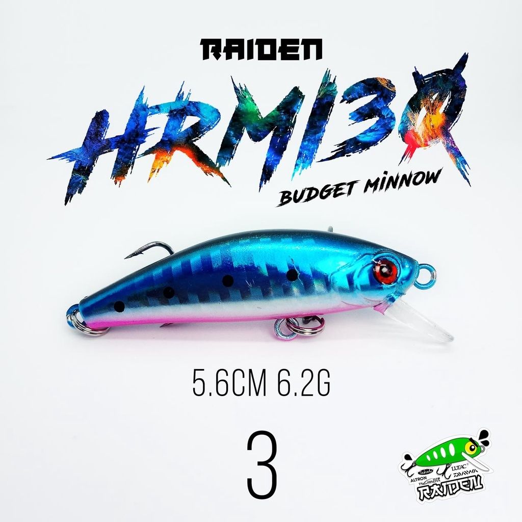 Model Number: HRMI30Material: ABSCategory: Budget MinnowAction: SinkingWeight:6.2gLength: 5.6cmColor: 10 ColorsPackage: OPP Bag