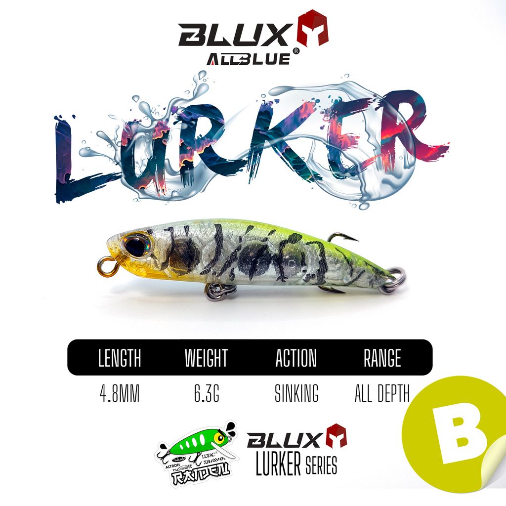 Brand: BLUX by ALLBLUEModel: Lurker 48Action: SinkingType: PencilColors: 10Length: 4.8mmWeight: 6.3g*actual weight may vary slightly
