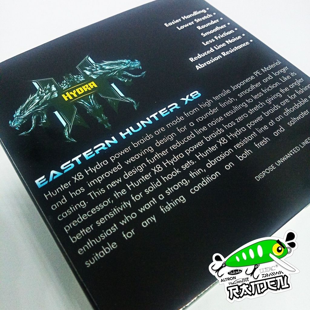 Hunter x8 Hydra power braids are made from high tensile Japanese PE Material and has improved weaving design for a rounder finish, smoother and longer casting. This new design further reduced line noise resulting to less friction. Like it's predecessor, the Hunter X8 Hydra power braids has zero stretch giving the angler better sensitivity for solid hook sets. Hunter X8 Hydra power braids are for fishing enthusiasts who want a strong, thin, abrasion resistant line at an affordable price suitable for any fishing conditions on both fresh and saltwater fishing.