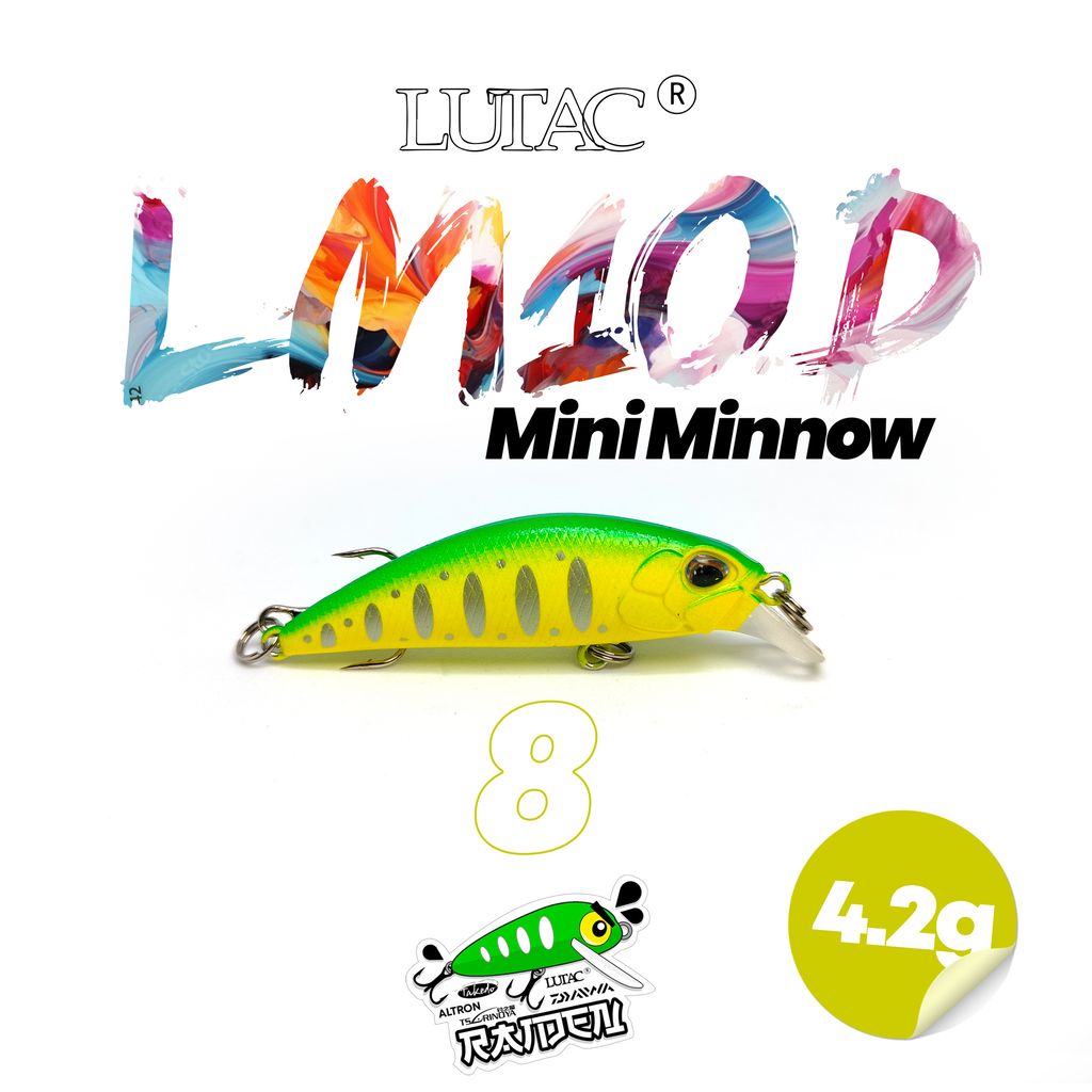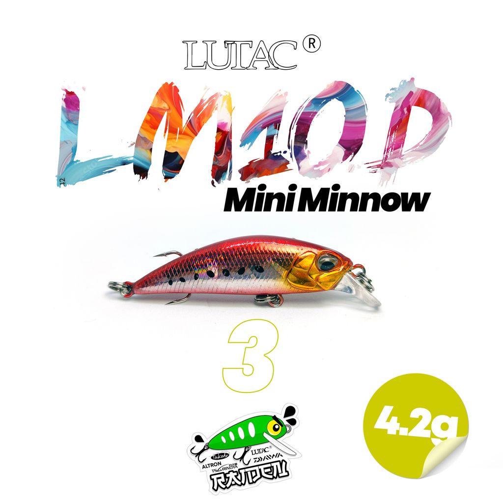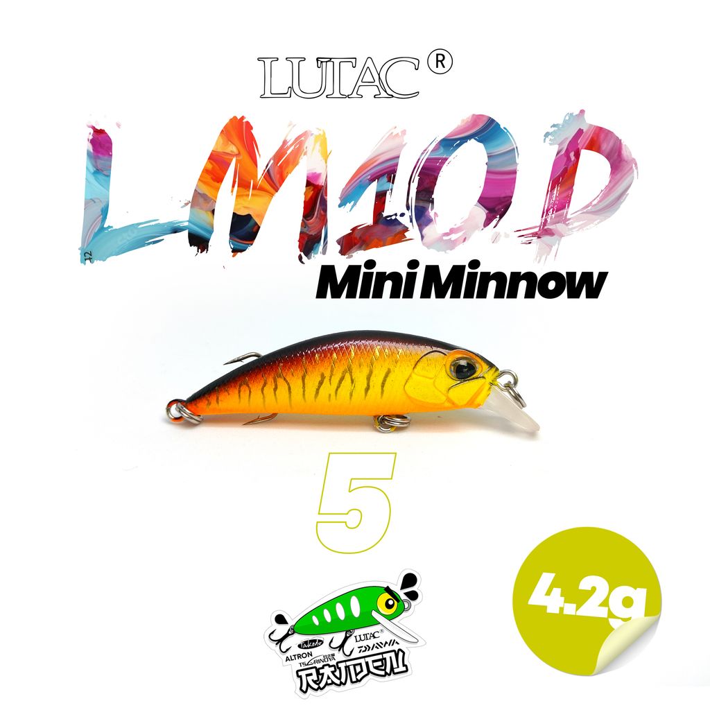 Brand: LUTACModel No.: LM10DHooks: #14Length: 42mmWeight: 4.2gAction: SinkingColors: 10 ColorsPackaging: Plastic Bag