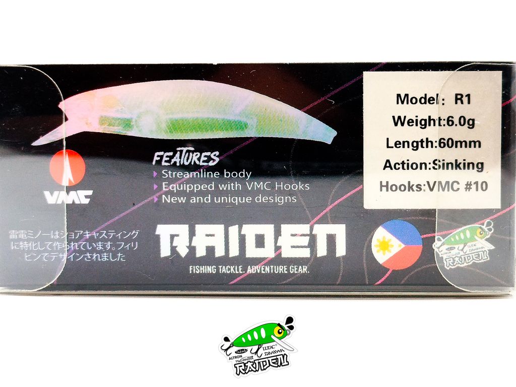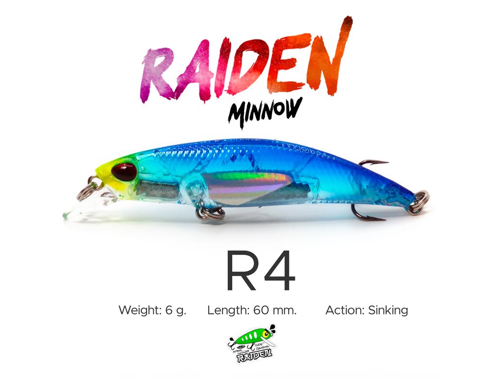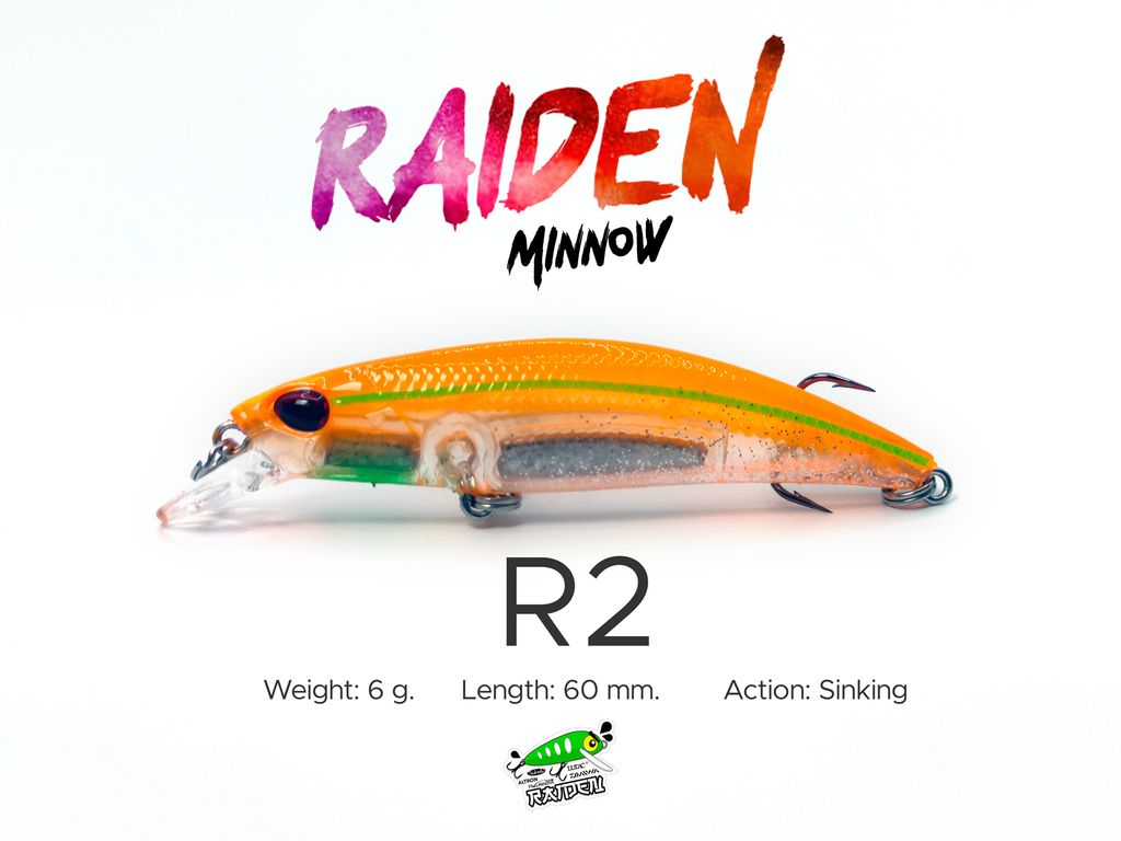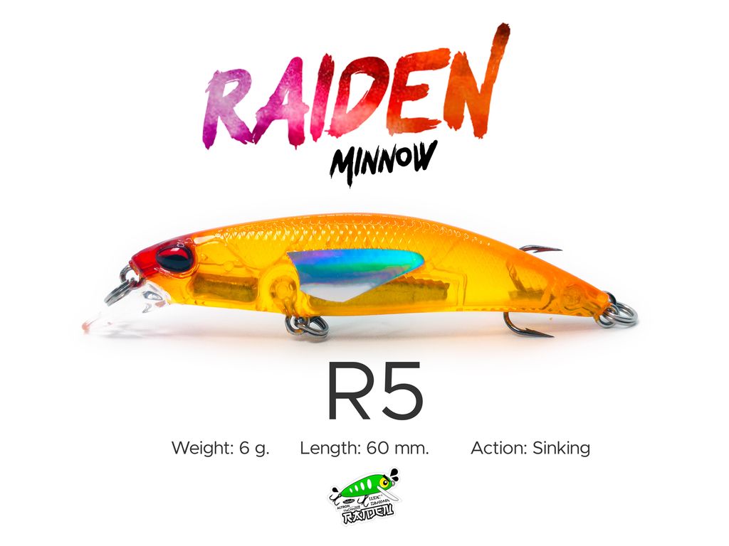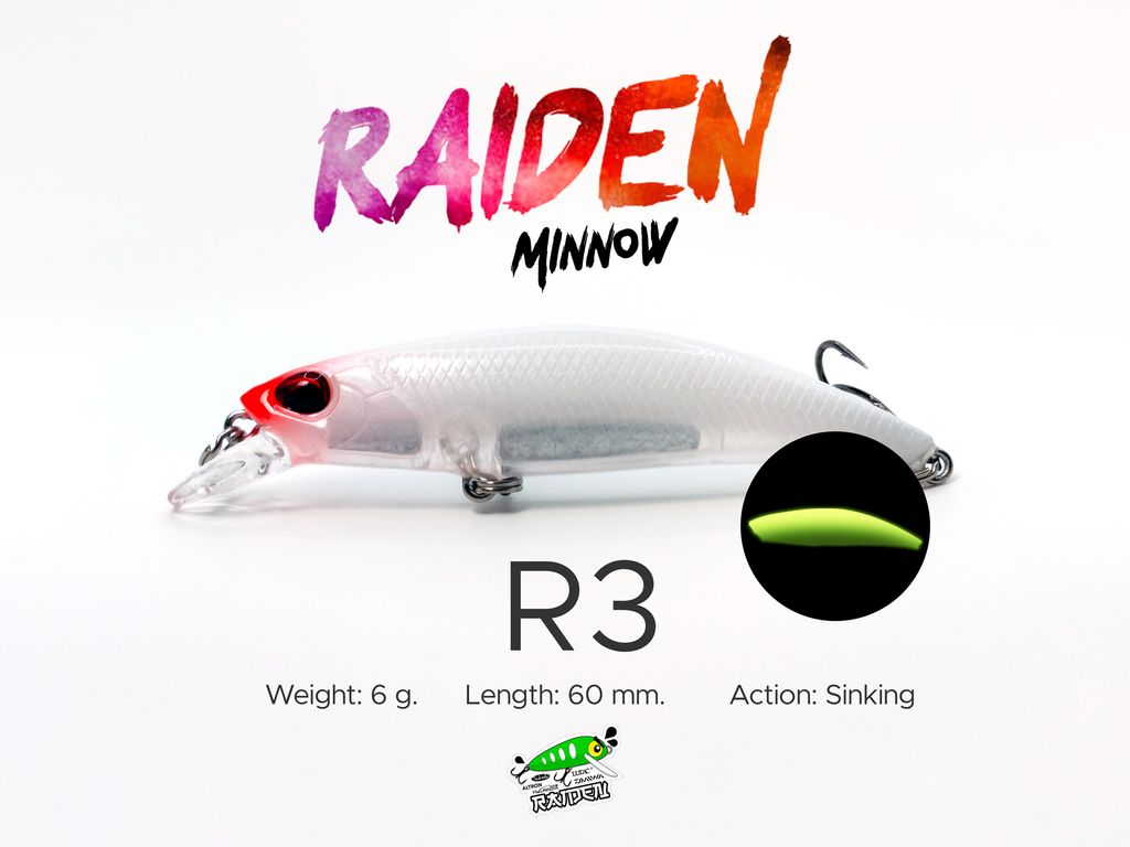 Model: Raiden Minnow 6gAction: SinkingWeight: 6gLength: 60mmVariations: 5 ColorsMaterial: PVCHooks: VMC Black Silver
